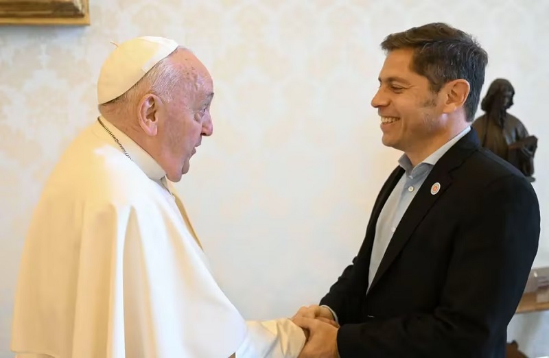 Kicillof visito al Papa Francisco en el Vaticano mientras se aprobaba la Ley Bases