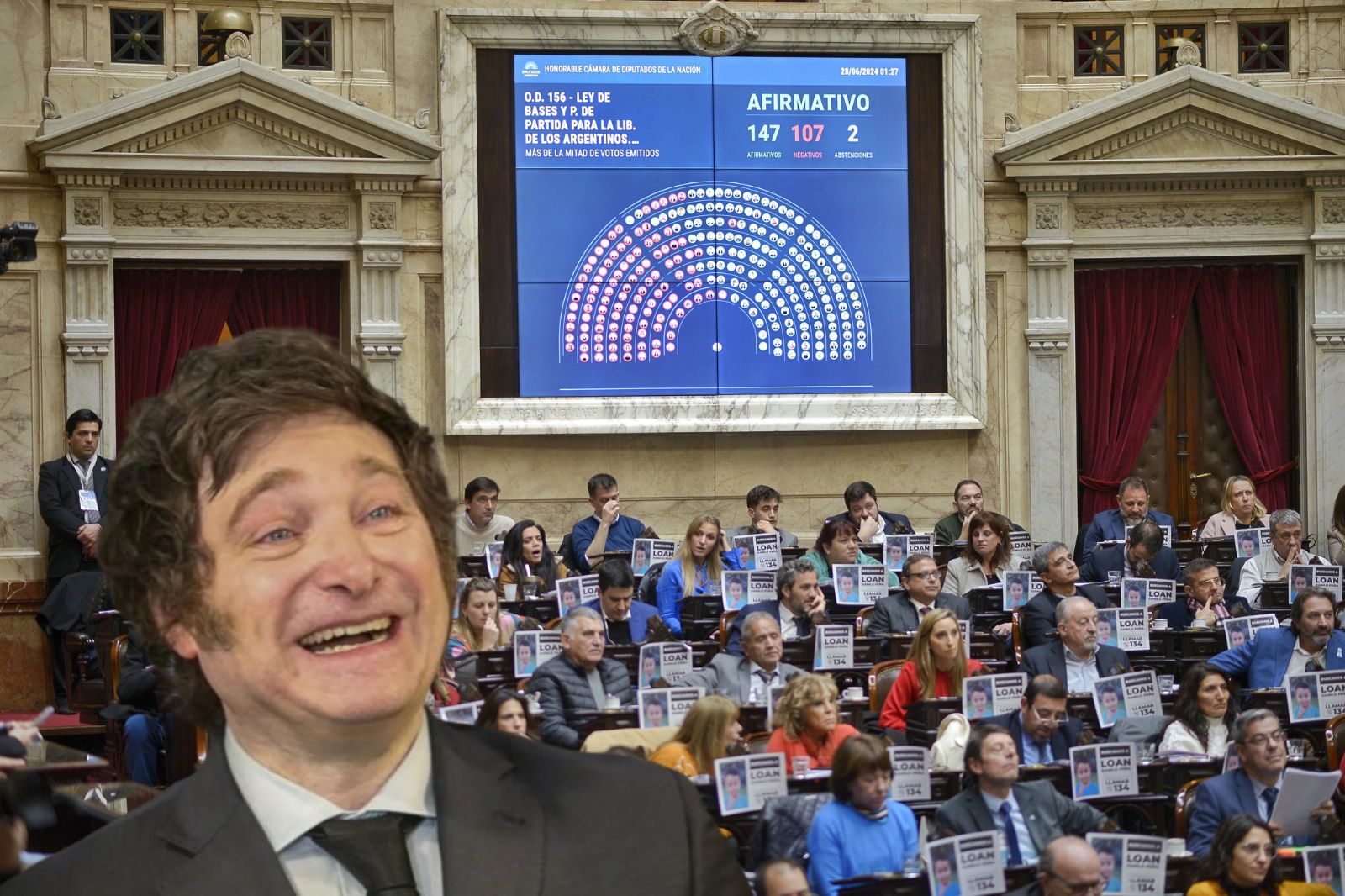 on la aprobación final de la Ley Bases y el paquete fiscal en la Cámara de Diputados el presidente Javier Milei se anotó el primer logro real de su gestión tras seis meses de tensas negociaciones con el ala de la oposición que finalmente le aportó los votos para poner en marcha el plan de reformas en el Estado, en materia laboral y de inversiones y que ahora lo pondrá a prueba.